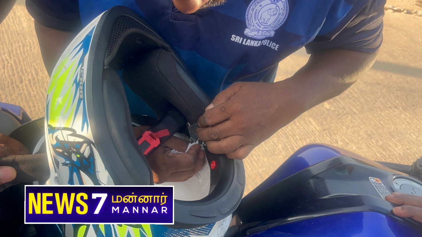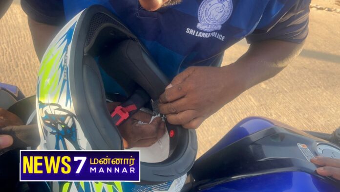 மன்னார் சாவற்கட்டு பகுதியில் மோட்டர்சைக்கிள் ஹெல்மட்டினுல் சூட்சமமான முறையில் ஐஸ் போதை பொருளை மறைத்து விற்பனைக்காக கொண்டு வந்த 31 வயது இளைஞன் கைது செய்யப்பட்டுள்ளார்.