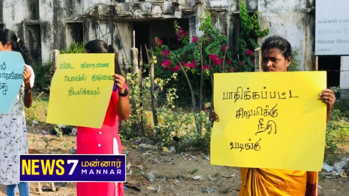 சிறுமியின் மரணத்திற்கு நீதியானதும் விரைவானதுமான நியாயத்தை வழங்க கோரியும் விசேட நீதிபதிகள் அடங்கிய குழு ஒன்று குறித்த வழக்கை விசாரிக்க கோரியும் தலைமன்னார் கிராமத்தை சேர்ந்த பொது மக்கள் போராட்டத்தில் ஈடுபட்டிருந்தனர்.