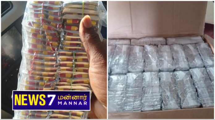 இலங்கை கடற்படை, பொலிஸ் விசேட அதிரடிப்படையினர் (STF) இணைந்து மேற்கொண்ட நடவடிக்கையின் போது, மன்னார் இலுப்பைக்கடவை தடாகத்தில் புதர்களுக்குள் மறைத்து வைக்கப்பட்டிருந்த 53,ஆயிரம் Pregabalin காப்ஸ்யூல்கள் மருந்து வில்லைகள் கண்டு பிடிக்கப்பட்டுள்ளது.
