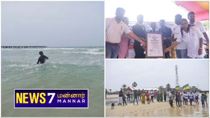 இவர் சுமார் 31.05 கிலோமீற்றர் தூரத்தை 8 மணித்தியாலம் 15 நிமிடங்களில் நீந்திக்கடந்துள்ளார்.