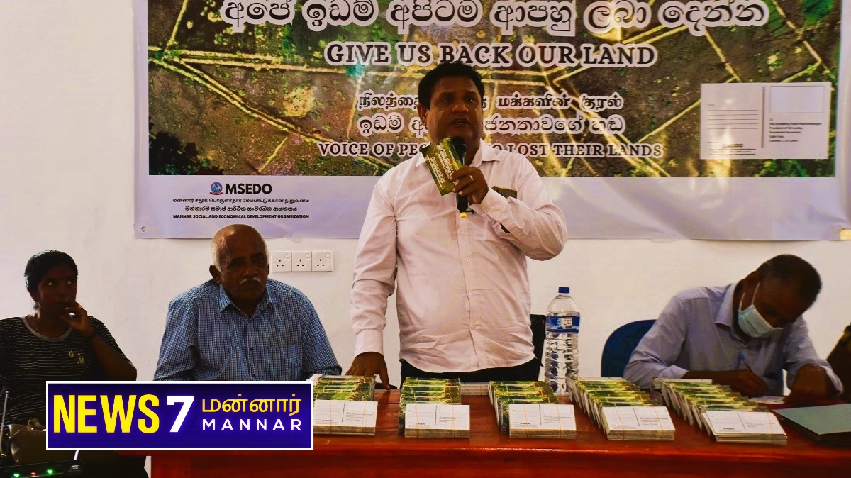 ‘எமது நிலத்தை எம்மிடம் மீள ஒப்படையுங்கள்’ எனும் தொனிப் பொருளில் வட மாகாண ரீதியாக இராணுவம்,கடற்படை மற்றும் ஏனைய திணைக்களம் வசம் இருக்கும் மக்களின் காணிகளை விடுவிக்க கோரி தபால் மூலம் ஜனாதிபதிக்கு அழுத்தத்தை வழங்கும் நிகழ்வு இன்றைய தினம் திங்கட்கிழமை (4) மன்னாரில் சமூக பொருளாதார மேம்பாட்டுக்கான நிறுவனத்தின் தலைவர் ஜாட்சன் பிகிறாடோ தலைமையில் மன்னாரில் இருந்து தபால் மூலம் ஜனாதிபதிக்கு கோரிக்கை அனுப்பி வைக்கும் நிகழ்வு இடம்பெற்றது.