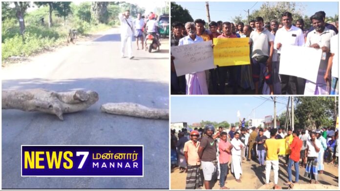நேற்றைய தினம் திங்கட்கிழமை மாலை அடம்பன் பிரதான வீதியில் இடம் பெற்ற விபத்தில் டிப்பர் வாகனம் மோதி அருட்தந்தை ஒருவர் பலியான நிலையில் தொடர்சியாக குறித்த வீதியில் விபத்துக்கள் இடம் பெறுவதாகவும் கபட் வீதி என்ற காரணத்தினால் வாகனங்கள் வேகமாக பயணிப்பதாகவும் எனவே குறித்த வீதியில் வீதித்தடை ஒன்றை அமைக்குமாறு கோரி பொது மக்கள் போராட்டத்தில் ஈடுபட்டனர்.