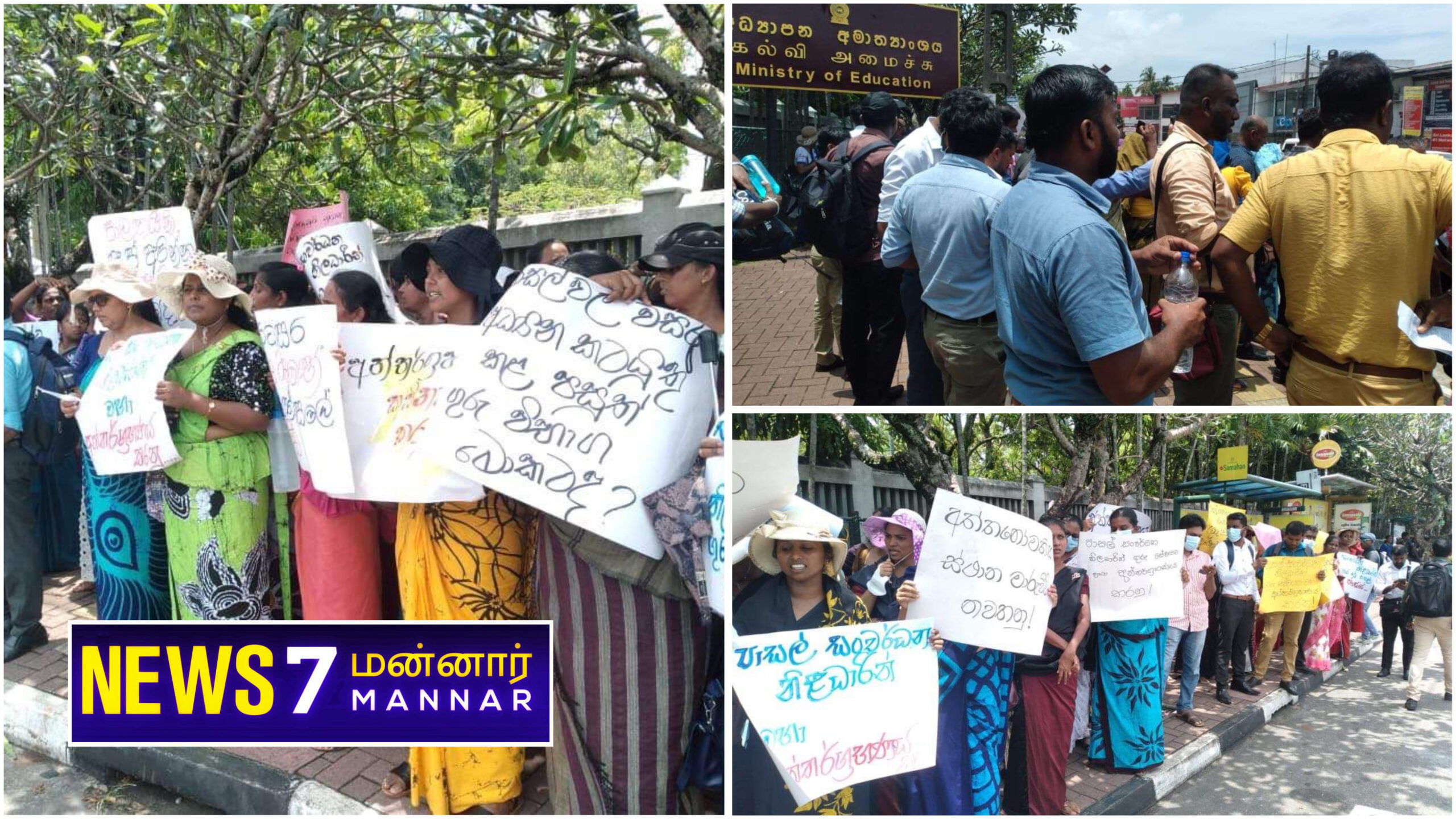 பாடசாலையில் இணைக்கப்பட்டு கற்றல் கற்பித்தலில் ஈடுபடுத்தப்பட்டுள்ளஅபிவிருத்தி உத்தியோகத்தர்களை ஆசிரிய சேவைக்குள் உள்ளெடுக்கக் கோரி கல்வியமைச்சருக்கு எதிராக கல்வியமைச்சின் முன் போராட்டம் நேற்றய தினம் (23.04.2024) இடம்பெற்றது.