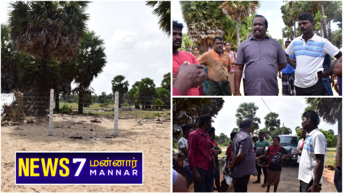 தலைமன்னார் பொலிஸ் பிரிவிற்குட்பட்ட கவயன் குடியிருப்பு பகுதியில் சுமார் 160 ஏக்கர் பனை மரங்களை கொண்ட குறித்த காணி சட்ட விரோதமாக பிடிக்கப்பட்டு குறித்த காணி அடைக்கப்பட்டுள்ளது.