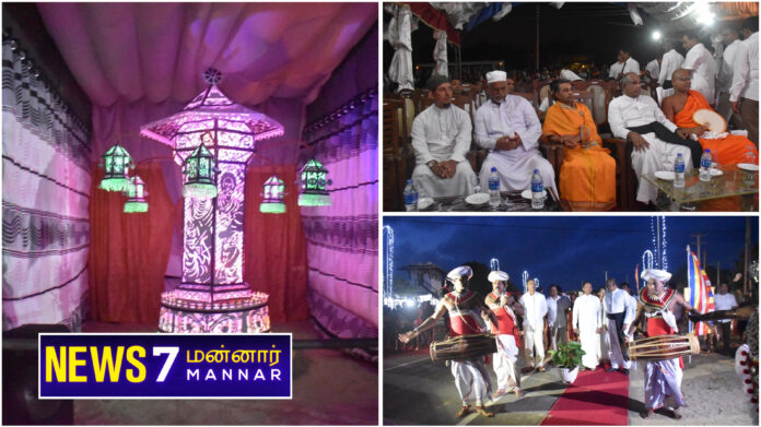 கௌதம புத்தரின், பிறப்பு, ஞானம் பெறல் மற்றும் பரி நிர்வானத்தை நினைவு கூறும் உலக பௌத்தர்களின் புனிதமான நாளான பொசன் தின நிகழ்வு நேற்று (21) மன்னாரில் ‘மன்னார் பொசன் சமாதான வலயம்’ எனும் தொனிப்பொருளில் சர்வமதங்களை உள்ளடக்கியதாக குறித்த வெசாக் நிகழ்வுகள் வைபவ ரீதியாக ஆரம்பித்து வைக்கப்பட்டது.