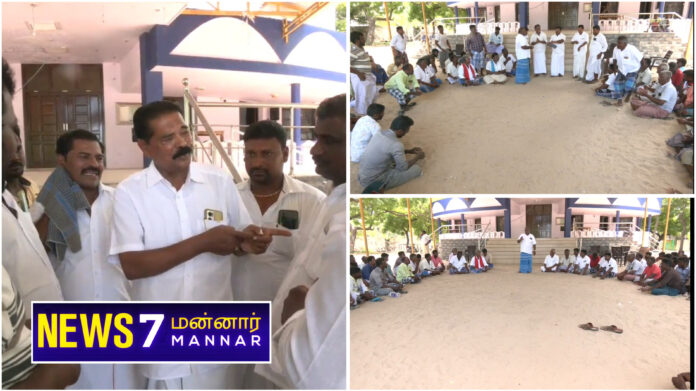 இந்நிலையில் நேற்று ராமேஸ்வரம் வட்டாட்சியர் அலுவலகத்தில் அதிகாரிகள் மட்டத்தில் நடைபெற்ற பேச்சு வார்த்தையில் ரயில் மறியல் போராட்டத்தை மீனவர்கள் தற்காலிகமாக ஒத்தி வைத்த நிலையில் இன்று பாம்பன் தூய மரியன்னை ஆலயத்தில் பாம்பன் நாட்டு படகு மற்றும் தூத்துக்குடி நாட்டுப்படகு மீனவர் சங்க தலைவர்கள் மற்றும் மீனவர்கள் அவசர ஆலோசனை கூட்டம் நடத்தினர்.