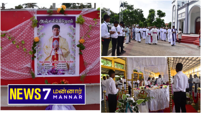 தொடர்ந்து இன்று செவ்வாய்க்கிழமை (9) மாலை 5 மணிக்கு பேராலயத்திலிருந்து மன்னார் சேமக்காலை க்கு அன்னாரின் பூதவுடல் எடுத்துச் செல்லப்பட்டு 5.45 மணிக்கு நல்லடக்கம் செய்யப்பட உள்ளமை குறிப்பிடத்தக்கது.