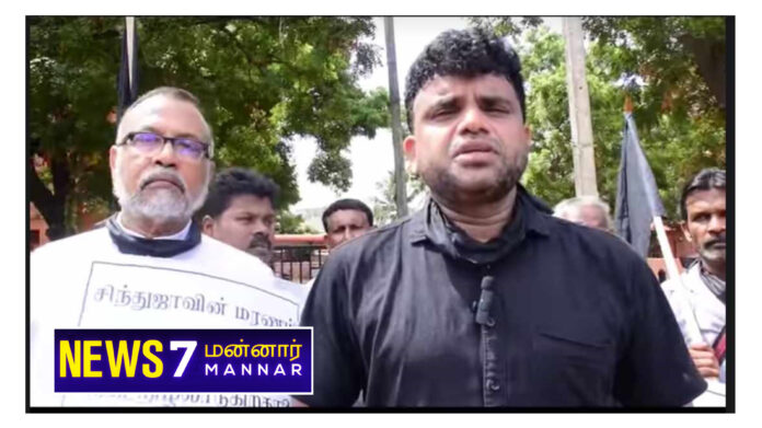 இன்றைய தினம் செவ்வாய்(13) சிந்துஜாவின் மரணத்திற்கு நீதி கேட்டு மன்னார் மாவட்ட பொது அமைப்புக்களின் ஒன்றியத்தின் ஏற்பாட்டில் கவனயீர்ப்பு போராட்டம் முன்னெடுத்தோம்.