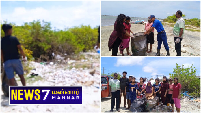மன்னார் மாவட்ட இளைஞர்களால் பிளாஸ்டிக் பொருட்களை அகழ்வு செய்யும் சிரமதானம் நேற்று சனிக்கிழமை(24) மன்னார் கோந்தப்பிட்டி கடற்கரையை அண்டிய பகுதியில் மேற்கொள்ளப்பட்டது.
