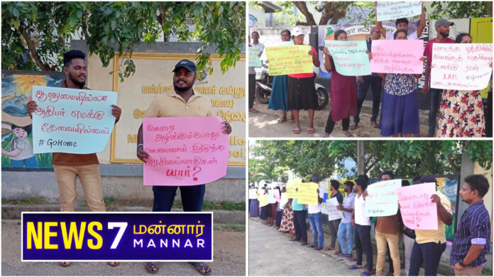 இந்த நிலையில் போராட்டம் இடம்பெற்ற இடத்திற்கு வருகை தந்த மன்னார் வலயக்கல்வி பணிமனை அதிகாரிகள் உடனடியாக குறித்த விடயம் தொடர்பாக துரித நடவடிக்கைகளை மேற்கொள்வதாக தெரிவித்த நிலையில் போராட்டம் கை விடப்பட்டமை குறிப்பிடத்தக்கது.