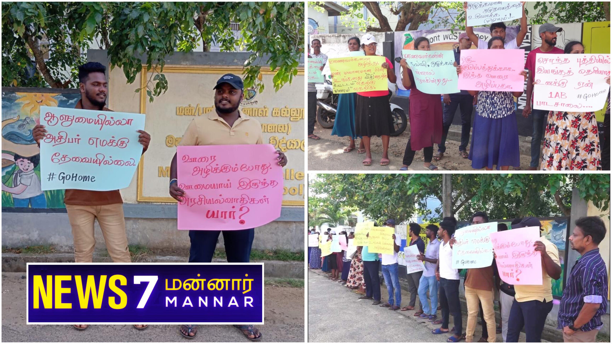 பிள்ளைகளின் கல்வியை பாளாக்காதே,ஒழுக்கம் இல்லாத உன்னால் எப்படி ஒழுக்கமான சமுதாயத்தை உருவாக்க முடியும்?, ஒரு குடும்பத்திற்காக ஊரை அழிப்பதா?, உள்ளிட்ட பல்வேறு வசனங்கள் எழுதப்பட்ட பதாகைகளை ஏந்தியவாறு போராட்டத்தில் ஈடுபட்டனர்.