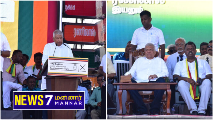 புலிகளுடன் தொடர்பு பட்டுக் கைதாகி சிறையில் இருப்பவர்களை விடுதலை செய்ய முயற்சி செய்வதோடு மன்னாரை மேம்படுத்தி பல்வேறு வேலைத்திட்டங்களை முன்னெடுக்க உள்ளதாகவும்,இவையெல்லாம் செயற்படுத்த 21 ம் திகதி நீங்கள் சிலிண்டருக்கு வாக்களியுங்கள் நாம் வெல்வோம் என ஜனாதிபதி ரணில் விக்கிரமசிங்க தெரிவித்தார்.