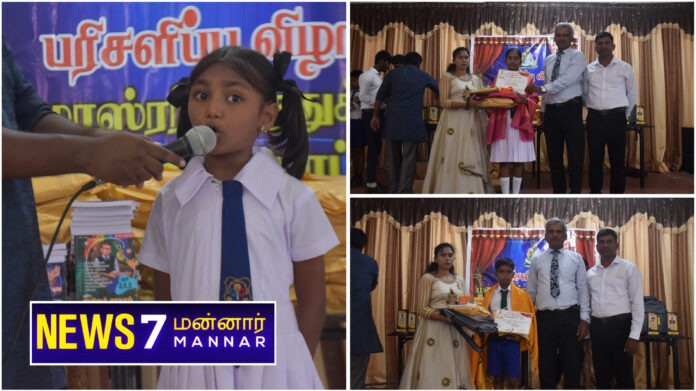 மன்னார் கல்வி வலயத்திற்குட்பட்ட மாணவர்களுக்கு இடையில் நடத்தப்பட்ட மணி மாஸ்டர் விருதுக்கான திருக்குறள் போட்டியில் வெற்றி பெற்ற மாணவர்களுக்கான பரிசளிப்பு நிகழ்வு நேற்று புதன்கிழமை(18) மாலை மன்னார் நகர சபை மண்டபத்தில் இடம்பெற்றது.