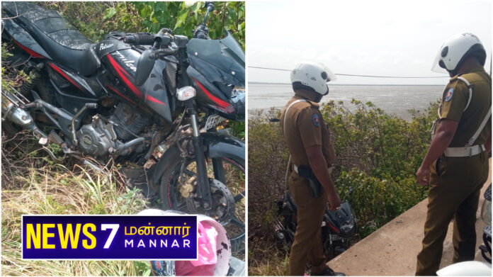 மன்னார் பெரிய பாலத்தடியில் மோட்டார் சைக்கிள் பாதையை விட்டு விலகி பள்ளத்தில் விழுந்து விபத்துக்குள்ளாகியுள்ளது.