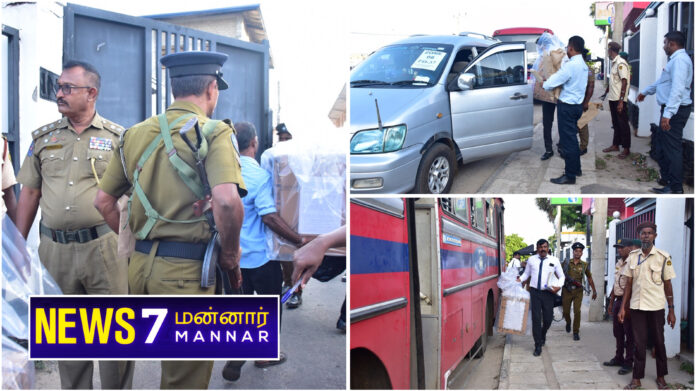 மாலை 4 மணியுடன் வாக்களிப்பு நிறைவடைந்த நிலையில் வாக்குப் பெட்டிகள் பலத்த பாதுகாப்பிற்கு மத்தியில் மன்னார் மாவட்டத்தில் வாக்கு எண்ணும் மத்திய நிலையமான மன்னார் மாவட்டச் செயலகத்திற்கு கொண்டு வரப்பட்டு கொண்டு இருக்கின்றன.