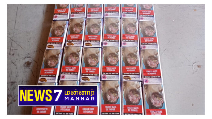 கடற்படை புலனாய்வு பிரிவுக்கு கிடைத்த தகவலின் அடிப்படையில் மன்னார் விசேட அதிரடிப்படையினரும் இணைந்து மேற்கொண்ட நடவடிக்கையின் போது குறித்த சிகரெட்டுக்கள் மீட்கப்பட்டுள்ளது.