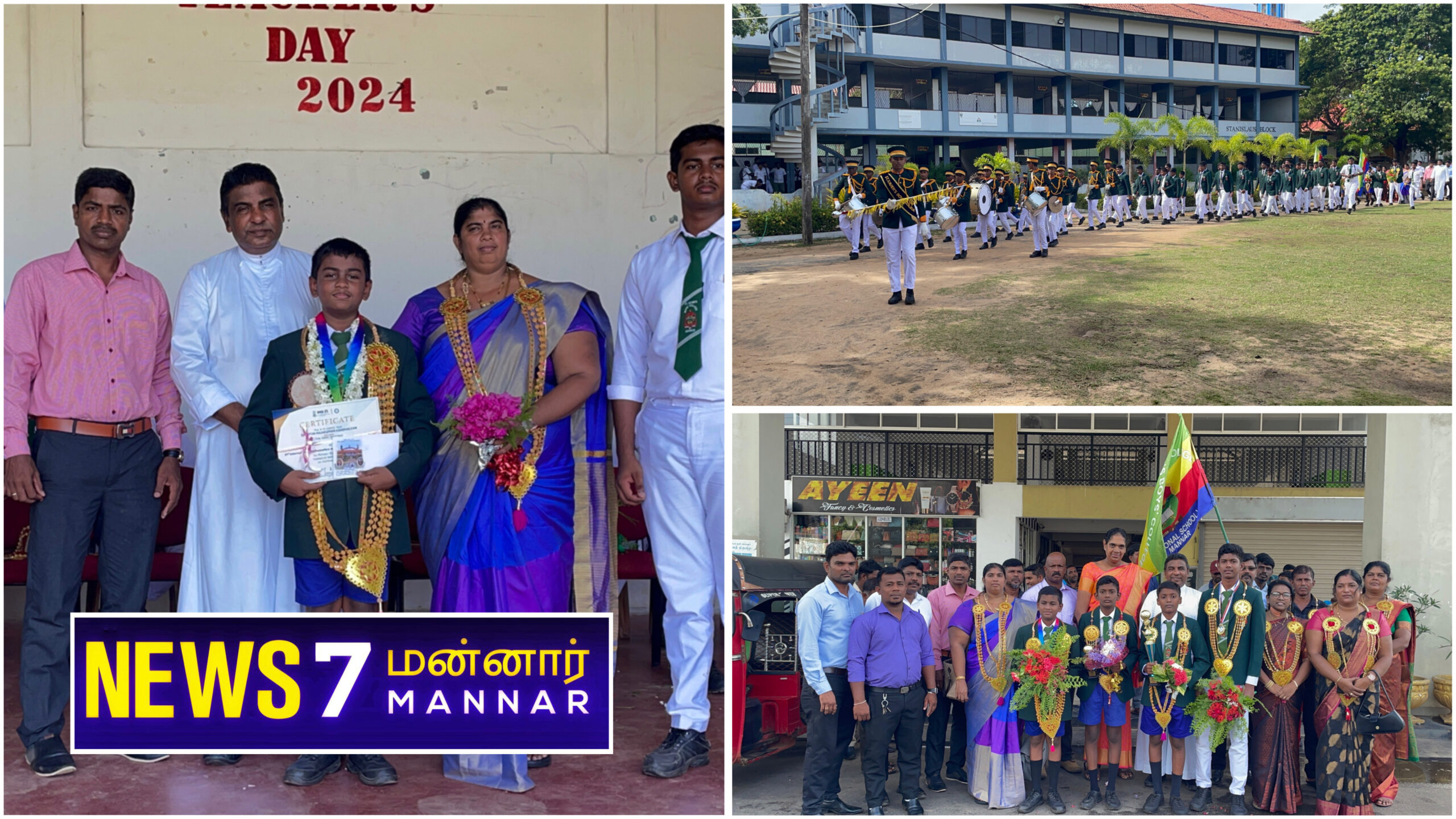 மன்னார் பிரதான பேரூந்து நிலையத்தில் இருந்து சாதனை வீரர்கள் மாலை அணிவிக்கப்பட்டு Band வாத்திய இசை இசைக்கப்பட்டு ஊர்வலமாக பாடசாலைக்கு அழைத்துவரப்பட்டு வெற்றிகிண்ணங்கள் சான்றிதழ்கள். பணப்பரிசில்கள் வழங்கி கெளரவிக்கப்பட்டனர்.