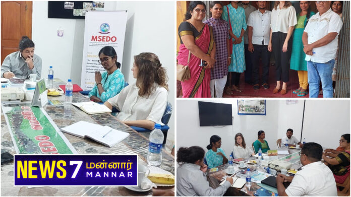 சுவிஸ் தூதரக அரசியல் விவகாரங்களுக்கான முதல் செயலாளர் ஜஸ்டின் கொய்லட் ( justine boillat) தலைமையிலான குழுவினர் இன்றைய தினம் செவ்வாய்க்கிழமை(22) மன்னாரிற்கு விஜயம் ஒன்றை மேற்கொண்ட நிலையில் இன்றைய தினம் செவ்வாய்க்கிழமை(22) மதியம் மன்னார் சமூக பொருளாதார மேம்பாட்டிற்கான நிறுவனத்திற்கு விஜயம் செய்திருந்தனர்.
