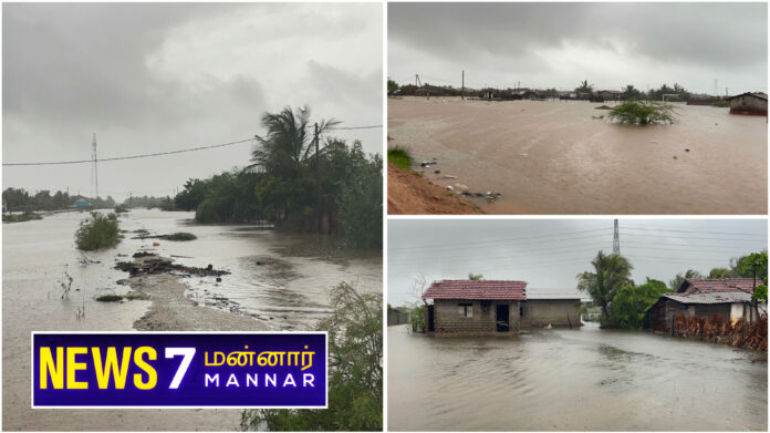 மன்னார் மாவட்டத்தில் நேற்று (23) புதன் இரவு முதல் இன்று வியாழன் (24) காலை வரை பெய்த தொடர் மழை காரணமாக மாவட்டத்தின் பல பகுதிகள் வெள்ளத்தில் மூழ்கியுள்ளது.