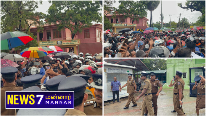 மன்னார் பொது வைத்தியசாலையில் இறந்த இளம் தாயின் மரணத்திற்கு நீதி கோரி நேற்றைய தினம் புதன்கிழமை (20) மாலை மன்னார் மாவட்ட பொது வைத்தியசாலைக்கு முன் அமைதியாக இடம் பெற்ற மக்கள் போராட்டத்தில் பொது சொத்துக்களை சேதப் படுத்தி வன்முறையை தூண்டும் விதமாக செயற்பட்ட நபர்களை கைது செய்ய பொலிஸார் நடவடிக்கையை மேற்கொண்டு வருகின்றனர்.