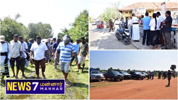 இந்த நிலையில் கடந்த திங்கட்கிழமை மணல் அகழ்வுக்கு எதிராக போராட்டத்தை முன்னெடுப்பவர்களுக்கு எதிராக மன்னார் நீதிமன்றத்தில் தடை உத்தரவு பெற்றுக் கொள்ளப்பட்ட நிலையில் இன்றைய தினம் புதன்கிழமை(19) காலை சுமார் 9.30 மணியளவில் மத்திய சுற்றாடல் அதிகார சபையின் தலைமையில் சுமார் 23 திணைக்களங்கள் மன்னார் மாவட்டச் செயலகத்திற்கு கட்டம் கட்டமாக வருகை தந்தனர்.