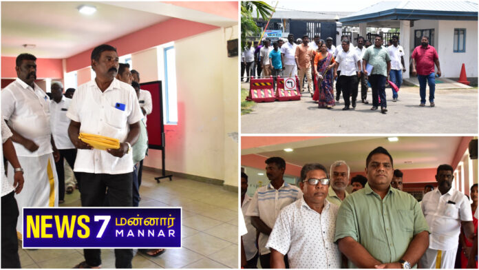 -எதிர் வரும் உள்ளூராட்சி மன்ற தேர்தலில் மன்னார் பிரதேச சபைக்கான வேட்புமனு இன்றைய தினம் புதன்கிழமை (26) மன்னார் மாவட்டச் செயலகத்தில் ஜனநாயக தமிழ் தேசிய கூட்டமைப்பு சார்பாக கையளிக்கப்பட்டது.