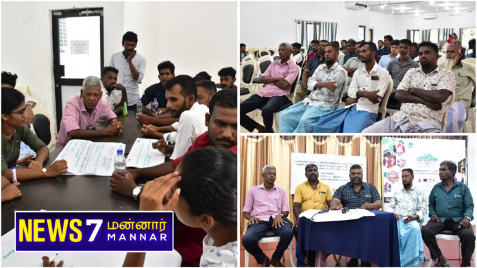 ‘மன்னார் மாவட்ட மீனவ சமூகம் எதிர்நோக்கும் சமூக பொருளாதார மற்றும் ஒருங்கிணைந்த உரிமைக்காய் எங்கள் குரல்’ எனும் தொனிப்பொருளில் மன்னார் விழுது ஆற்றல் மேம்பாட்டு மையம் ஏற்பாடு செய்த கருத்து பகிர்வு நிகழ்வு நேற்றைய தினம் புதன் கிழமை (26) காலை முதல் மாலை வரை மன்னார் நகர மண்டபத்தில் இடம்பெற்றது.