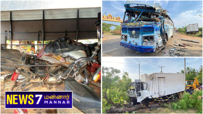 மன்னார்-யாழ் பிரதான வீதி, கள்ளியடி பகுதியில் இன்று சனிக்கிழமை (3) காலை இடம்பெற்ற கோர விபத்தில் பலர் படுகாயமடைந்துள்ளனர்.