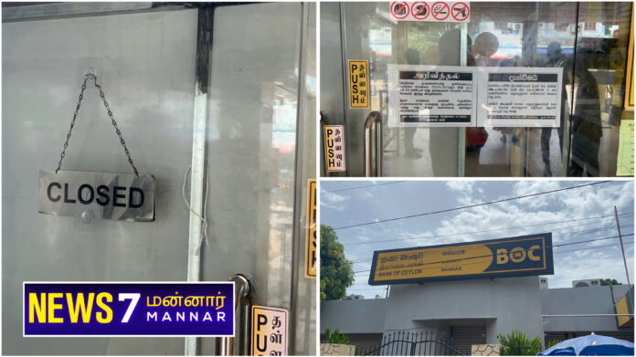 மன்னார் இலங்கை வங்கி ஊழியர்கள் இன்றையதினம் வியாழக்கிழமை காலை 10.30 முதல் அடையாள தொழிற்சங்க நடவடிக்கை ஒன்றை முன்னெடுத்து வருகின்றனர்.