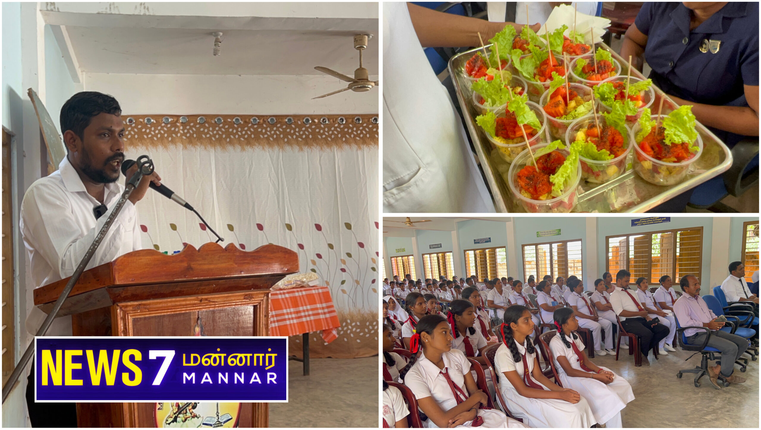 தேசிய போசாக்கு மாதத்தை முன்னிட்டு பாடசாலை மாணவர்கள் மத்தியில் போசாக்கான உணவுகளை உண்ணும் பழக்கத்தை வலுப்படுத்தும் முகமாக மன்னார் பிராந்திய சுகாதார சேவைகள் பணிமனை மற்றும் மன்னார் பொது சுகாதார வைத்திய அதிகாரி பணிமனை இணைந்து எற்பாடு செய்த விசேட விழிப்புணர்வு நிகழ்வு மன்/சித்தி விநாயகர் இந்து கல்லூரியில் இடம் பெற்றது.