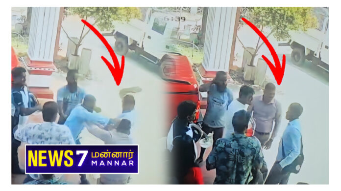 நேற்றைய தினம் மன்னார் நகரசபை அமர்வுகள் நிறைவடைந்த நிலையில் கட்சி ஆதரவாளர்கள் பொது மக்கள் என பலர் மன்னார் நகரசபை முன்பகுதியில் நிறைந்திருந்த நிலையில் நபர் ஒருவரை அழைத்து இருவர் உரையாடி இருந்தனர் குறித்த உரையாடல் கைக்கலப்பாக மாறி இரு நபர்களும் இணைந்து மன்னார் பள்ளிமுனையை சேர்ந்த நபர் மீது கடுமையான தாக்குதல் நடத்தியிருந்தனர்.