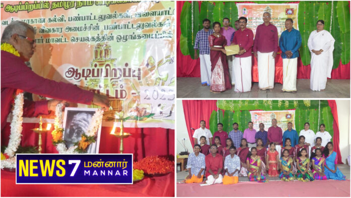வடக்கு மாகாண கல்வி அமைச்சின் பண்பாட்டலுவல்கள் அலகின் அனுசரணையுடன் மன்னார் மாவட்ட செயலகத்தினால் வருடாந்தம் நடாத்தப்படும் மன்னார் மாவட்ட மட்டத்திலான ஆடிப்பிறப்பு விழா நிகழ்வுகள் இன்றைய தினம் வியாழக்கிழமை(17) மன்னார் திருக்கேதீஸ்வரம் கௌரியம்பாள் தமிழ் மகா வித்தியாலயத்தில் இடம் பெற்றது.