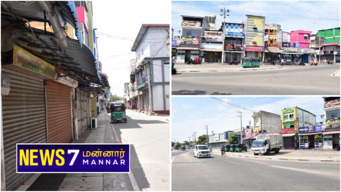 -குறித்த போராட்டத்திற்கு பூரண ஆதரவை வழங்கும் வகையில் மன்னார் நகர பகுதியில் உள்ள ஒரு சில உணவகங்களை தவிர அனைத்து வர்த்தக நிலையங்களும் மூடப்பட்டது.
