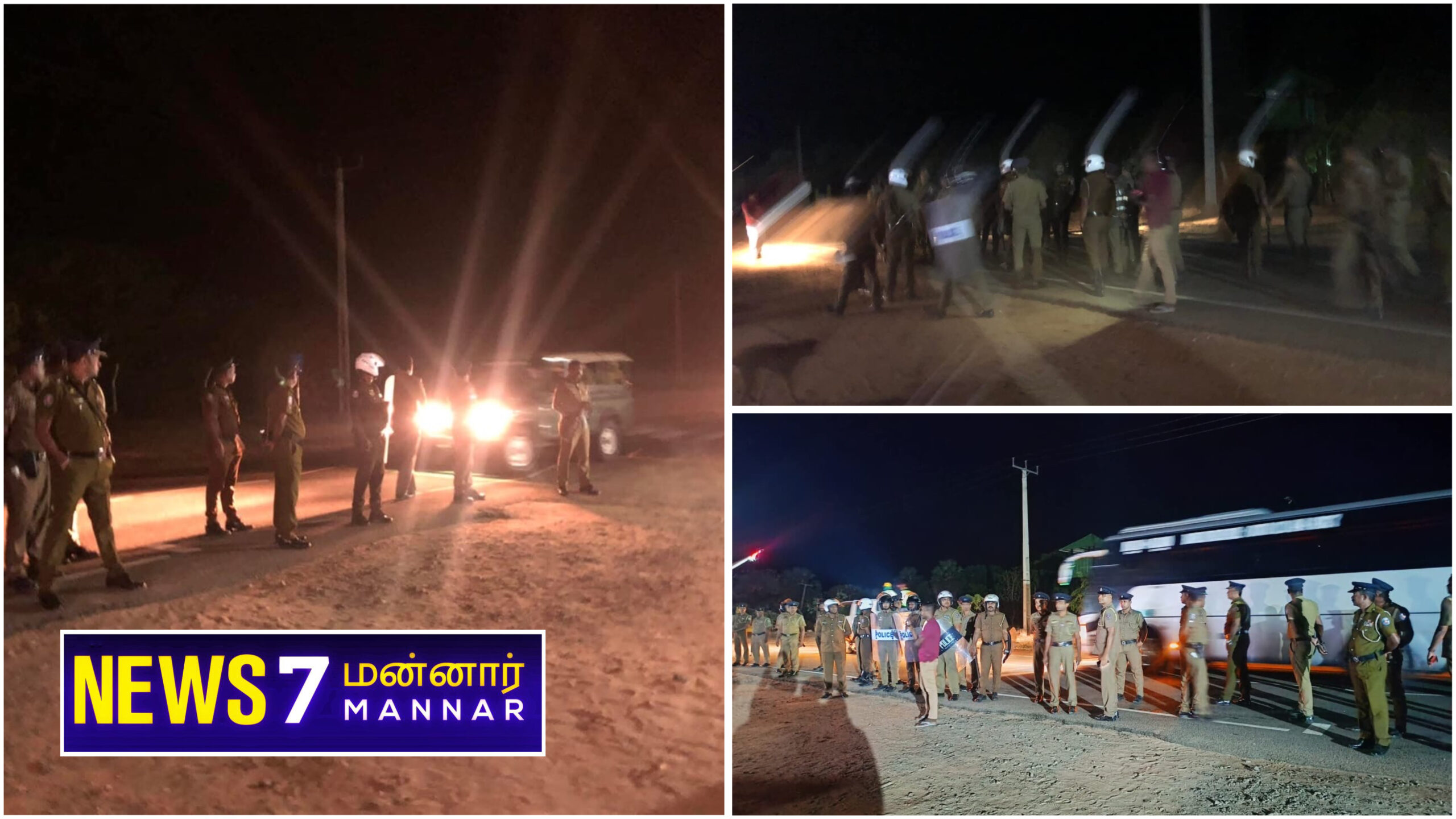 குறித்த பகுதியில் நின்ற மக்கள் அவ்விடத்தில் இருந்து சென்ற நிலையில் இன்று புதன்கிழமை (6) அதிகாலை 2.30 மணியளவில் நூற்றுக்கணக்கான போலீசார் மற்றும் கலகம் அடக்கும் பொலிஸாரின் பாதுகாப்புடன் காற்றாலை மின் கோபுரங்களை ஏற்றிய வாகனம் மன்னாரை நோக்கிச் சென்றது.