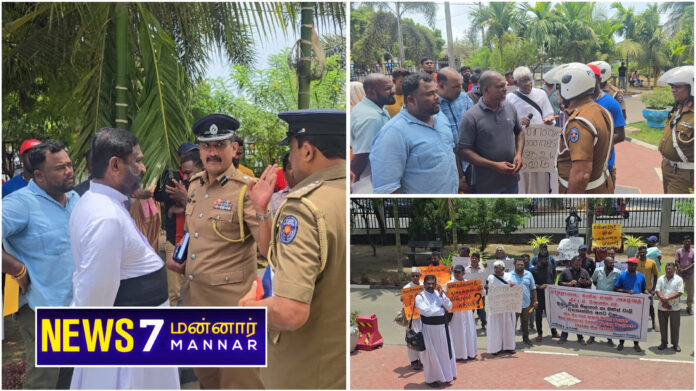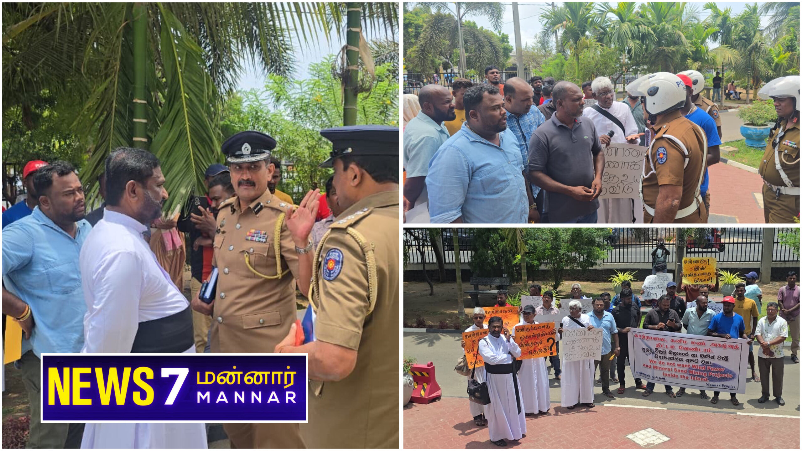 இன்றையதினம் மன்னார் மாவட்ட அபிவிருத்திகுழு கூட்டம் மன்னார் மாவட்ட செயலகத்தில் இடம் பெற்று வந்த நிலையில் போராட்டகாரர்கள் மற்றும் பொதுமக்கள் இணைந்து அபிவிருத்தி குழு தலைவர் மற்றும் அரசாங்க அதிபர் உள்ளடங்களாக பாராளுமன்ற உறுப்பினர்களுக்கு மகஜர் ஒன்றை வழங்குவதற்க்கு மாவட்ட செயலகத்திற்குள் அமைதியான முறையில் நுழைந்த நிலையில் பொலிஸார் போராட்டகாரர்களை வெளியேற்ற முயற்சித்தனர்.