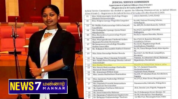 இந்நிலையில், இலங்கை நீதித்துறை வரலாற்றில் மிக இளவயதில் நீதிபதியாக யாழ்ப்பாணத்தைச் சேர்ந்த தமிழ் பெண்மணி ஒருவர் தேர்வாகியுள்ளார்.