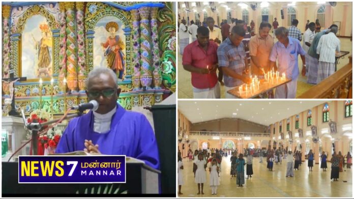 யுத்தத்தில் உயிர் நீத்தவர்களை நினைவு கூறும் முகமாக மன்னார் பேசாலை மக்களின் ஏற்பாட்டில் பேசாலை புனித வெற்றி நாயகி ஆலயத்தில் இன்று திங்கட்கிழமை (27) காலை விசேட திருப்பலி ஒப்புக்கொடுக்கப்பட்டது.