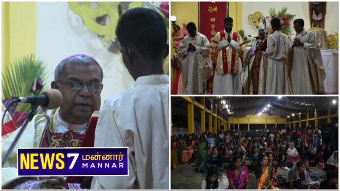 மன்னார் மறைமாவட்ட ஆயர் மேதகு இம்மானுவேல் பெர்னாண்டோ ஆண்டகை தலைமையில் அருட்தந்தையர்கள் இணைந்து திருவிழா திருப்பலியை கூட்டுத்திருப் பலியாக ஒப்புக் கொடுத்தனர்.