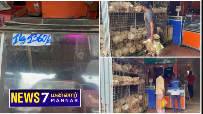 குறிப்பாக ஒரு கிலோ இறைச்சி கோழி 1360 ரூபாவாகவும் முட்டை கோழி உயி இடை கிலோ 1100 ரூபாவகவும் விற்பனை செய்யப்பட்டு வருகின்றது.